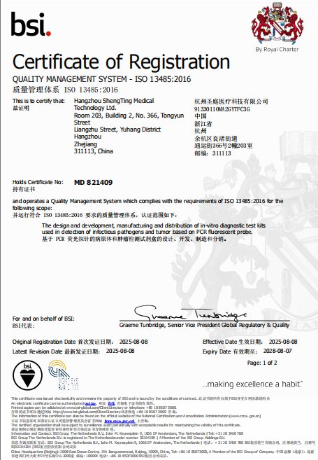 圣庭醫療始終堅持“不斷創(chuàng )新,始于對生命的承諾”,此次認證不是終點(diǎn),而是新的起點(diǎn)。圣庭醫療在全國8個(gè)城市建立實(shí)驗室和1個(gè)GMP生產(chǎn)車(chē)間,銷(xiāo)售網(wǎng)絡(luò )遍布全國市場(chǎng),已與東南亞、南亞和西亞等地區多個(gè)國家建立深度的業(yè)務(wù)合作,圣庭醫療將繼續優(yōu)化質(zhì)量管理體系,推動(dòng)產(chǎn)品的迭代與升級,以更高的標準服務(wù)醫療健康事業(yè),為行業(yè)高質(zhì)量發(fā)展貢獻力量!